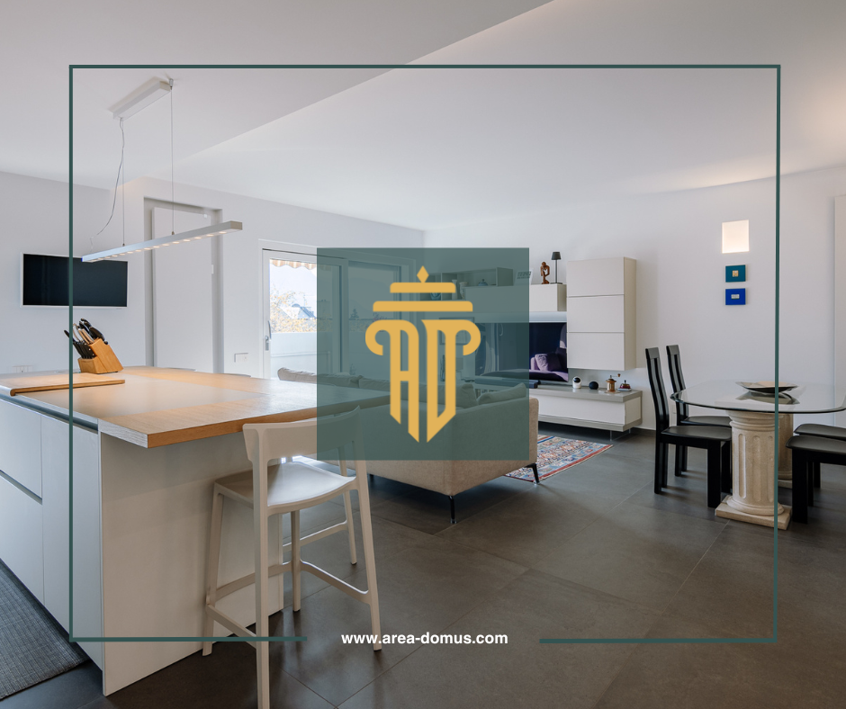 La proprietà si compone di un’ampia e luminosa zona living con cucina a vista, impreziosita da un’isola centrale che unisce funzionalità e design, con accesso a un balcone perfettamente esposto. Seguono due spaziose camere da letto, di cui una dotata di cabina armadio e bagno padronale finestrato, un’ulteriore stanza-studio, un ampio bagno con wc, una lavanderia a scomparsa nonché un comodo ripostiglio.